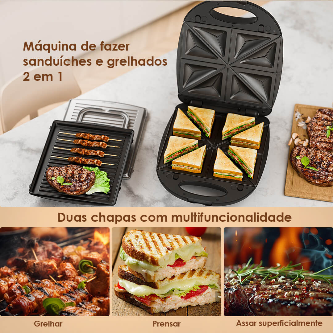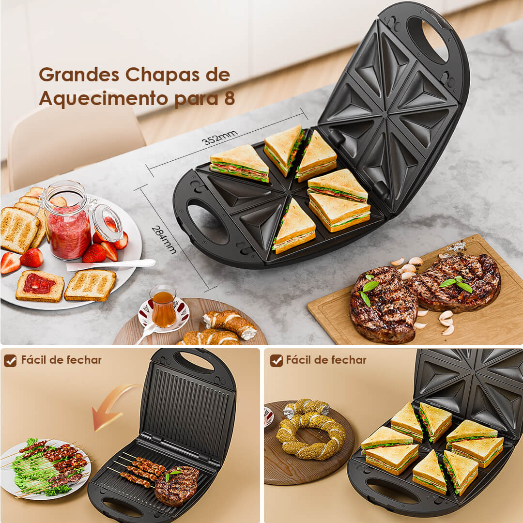 Faça 8 sanduíches de uma vez, perfeito para festas e uso diário da família.