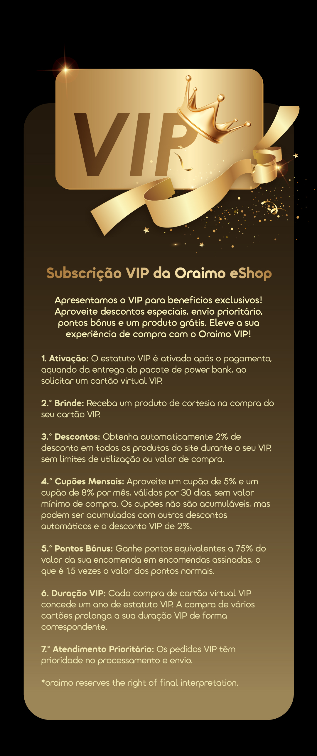Nota: Ao adquirir o serviço VIP, em vez de receber um cartão VIP físico, você receberá um produto de cortesia (OPB-1201). Seu status VIP será ativado assim que você assinar o recebimento e concluir o pagamento.