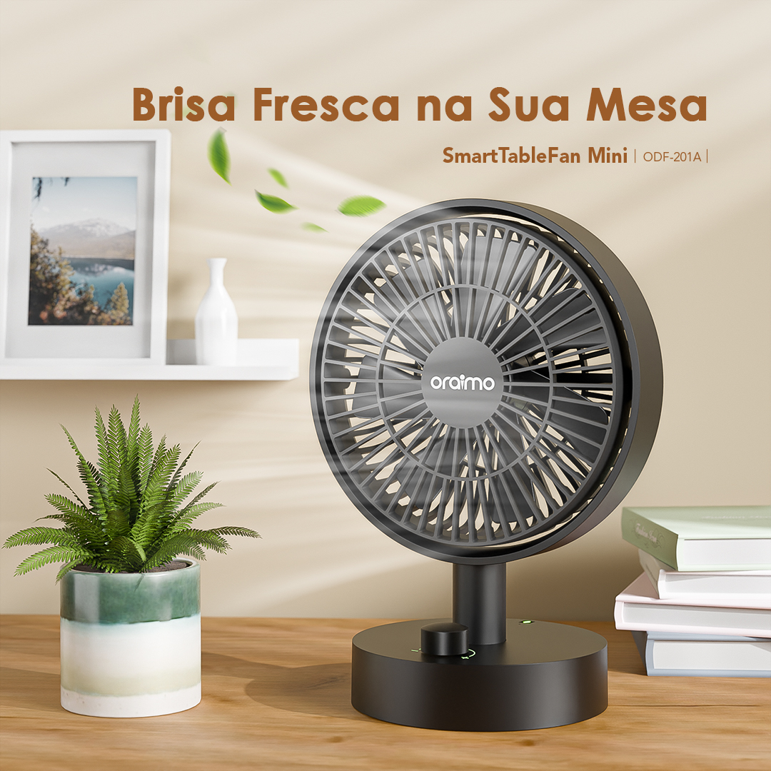 Equipado com um motor brushless de alto desempenho, o SmartTableFan Mini proporciona uma brisa impressionante e poderosa, ideal para qualquer ambiente.