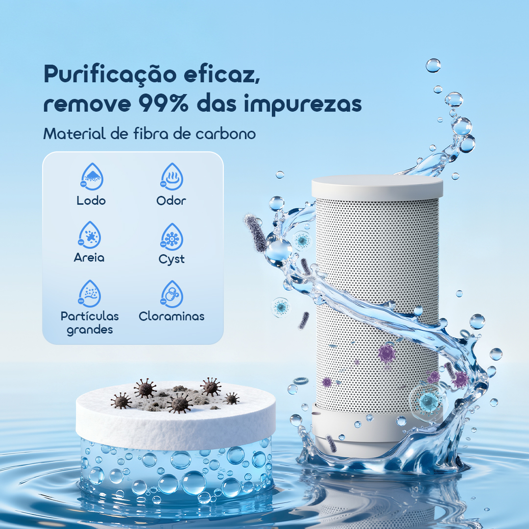 Remove eficazmente 99% das impurezas com filtragem avançada de bloco de carbono, garantindo água limpa e segura para suas necessidades diárias.