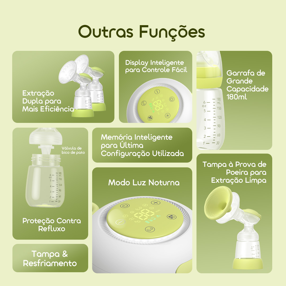 A avançada tecnologia de microvibração do DuoPump ajuda a aliviar o desconforto ao afrouxar suavemente os ductos de leite bloqueados, permitindo um fluxo de leite mais suave.