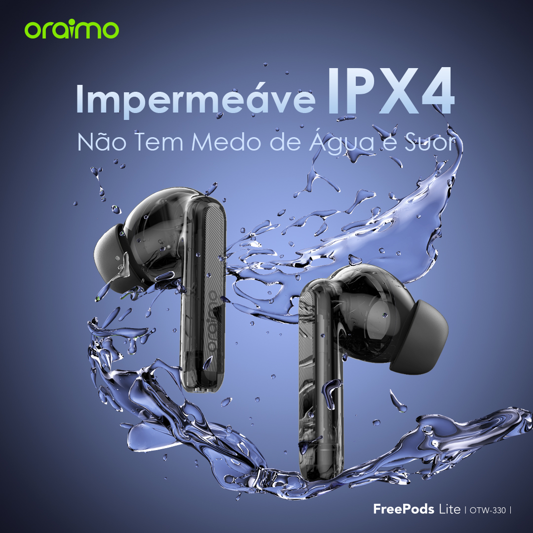 Com a classificação de impermeabilidade IPX4, nem respingos nem suor vão parar a sua música. Os FreePods Lite são criados para acompanhá-lo através de chuva e tempo de treino.