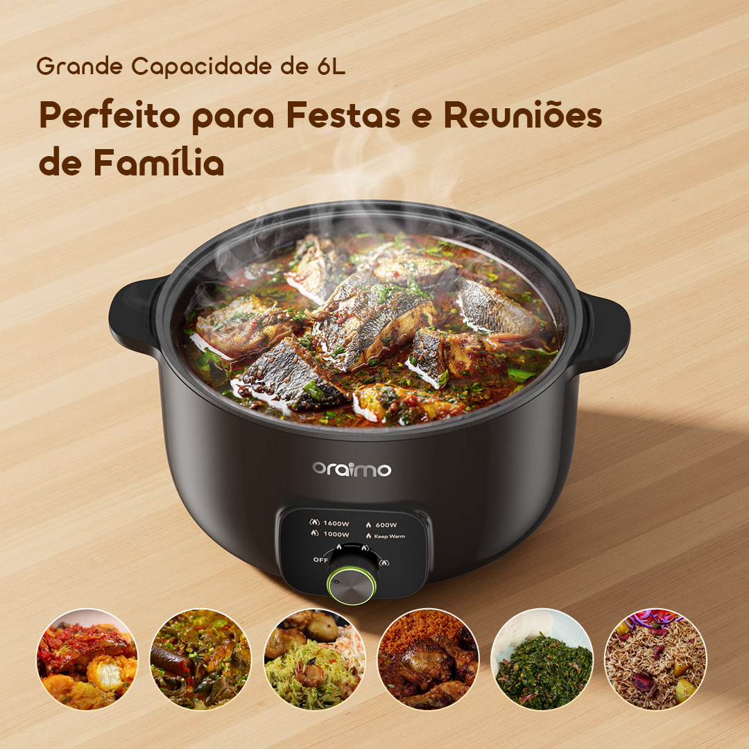 Com capacidade de 6L e abertura de 30cm, esta panela permite cozinhar de uma vez, comer a semana toda e servir facilmente 6–8 pessoas em uma única refeição.