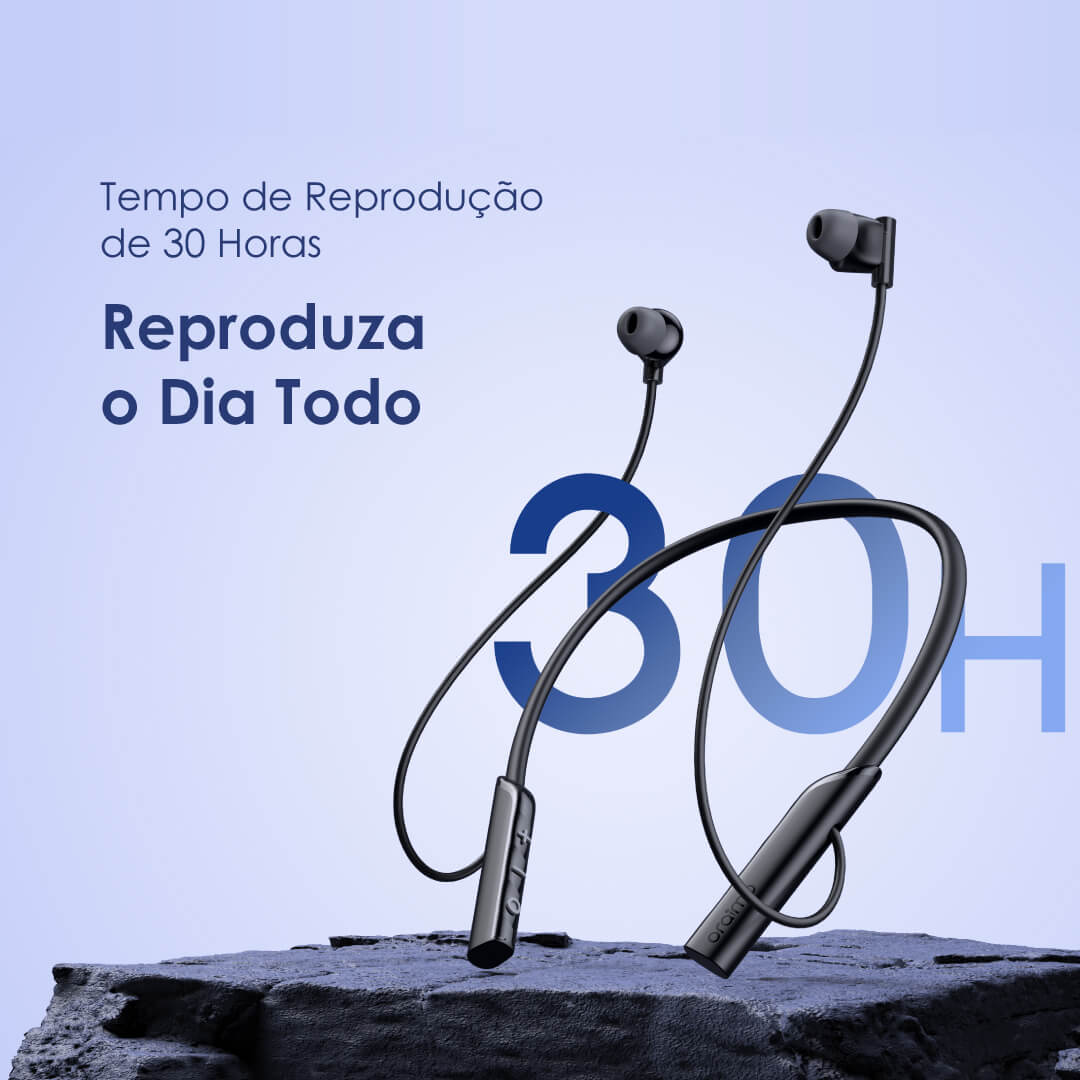 Aproveite 30 horas de reprodução de música com uma única carga. Você pode ouvir sua música favorita o dia inteiro sem preocupar-se com a bateria se esgotar.