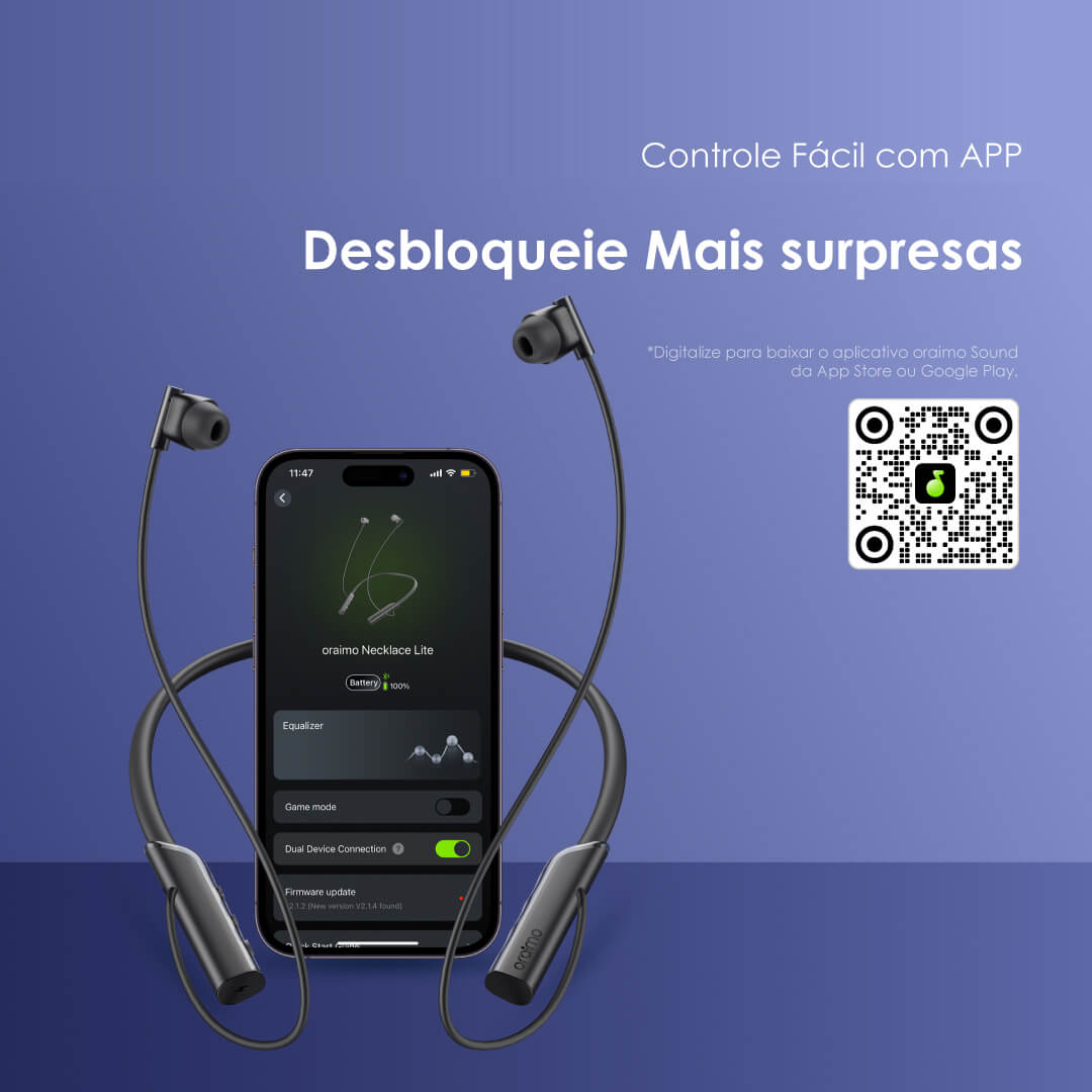 Equipado com drivers dinâmicos de 10mm e o algoritmo exclusivo HavyBass®, o Necklace Lite oferece uma experiência de ouvido extraordinária com graves profundos.