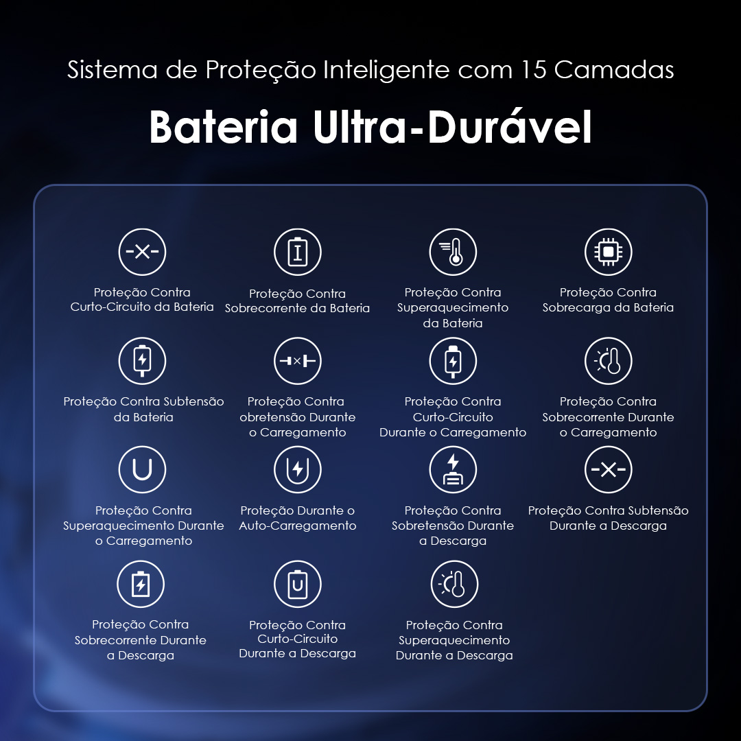 Equipado com um avançado sistema de proteção inteligente de 15 camadas, garante uma vida útil prolongada e oferece tranquilidade.