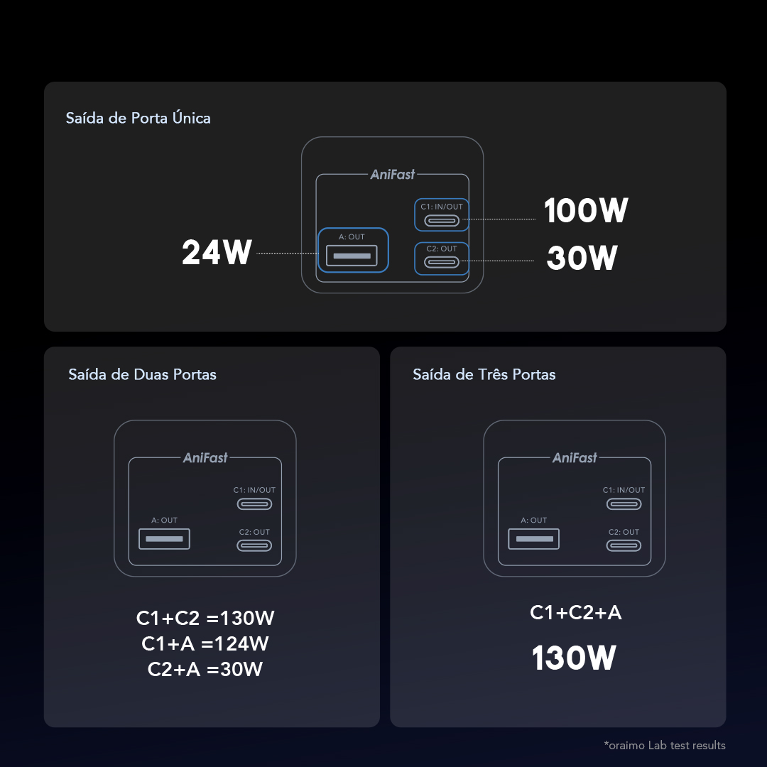 Saída(TYPE-C1):5V 3A;9V 3A;12V 3A;15V 3A;20V 5A(100W Máx)