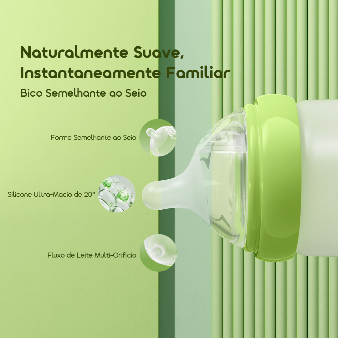O bico com formato de seio flexiona e estica suavemente como o da mãe, permitindo que seu bebê se alimente confortavelmente e no próprio ritmo.