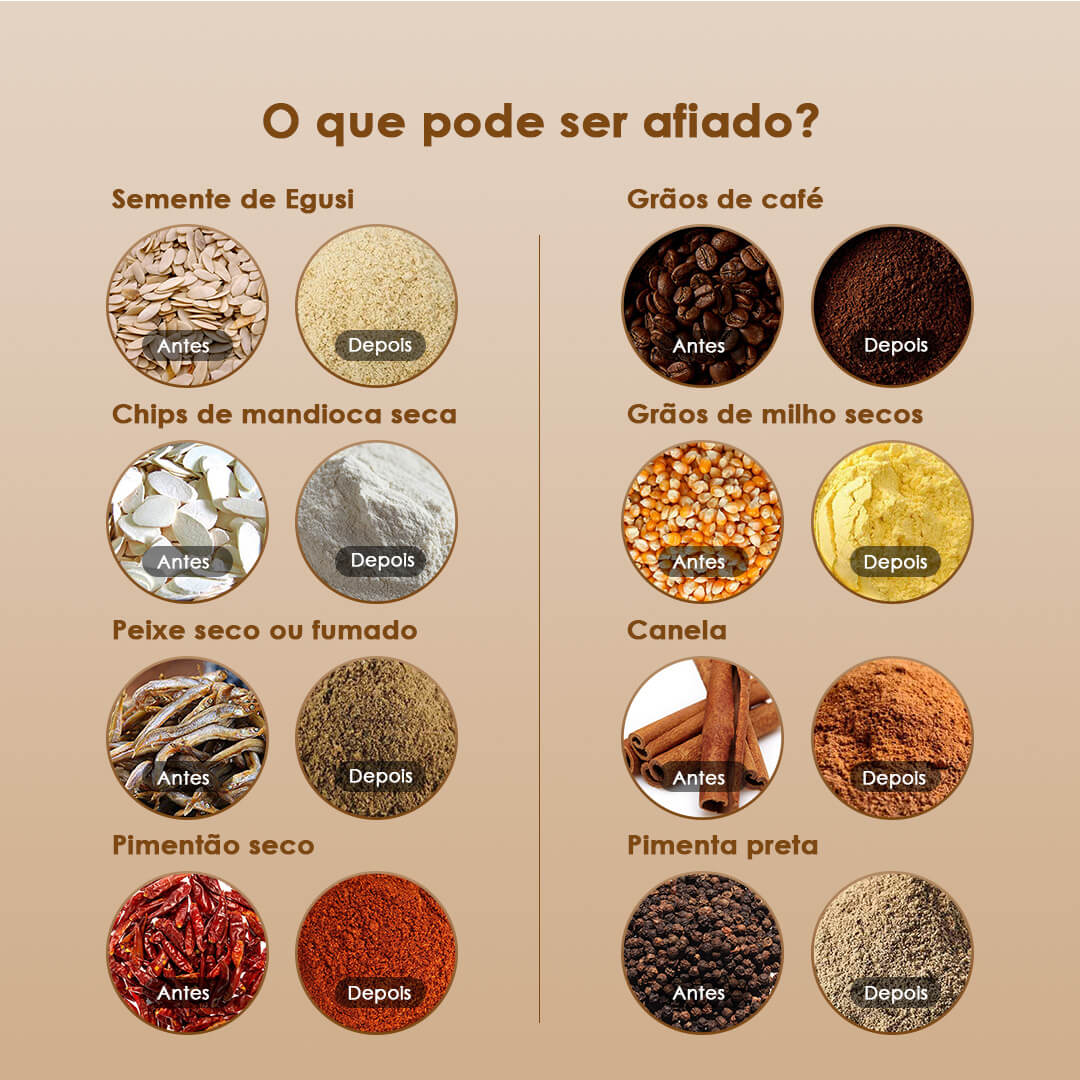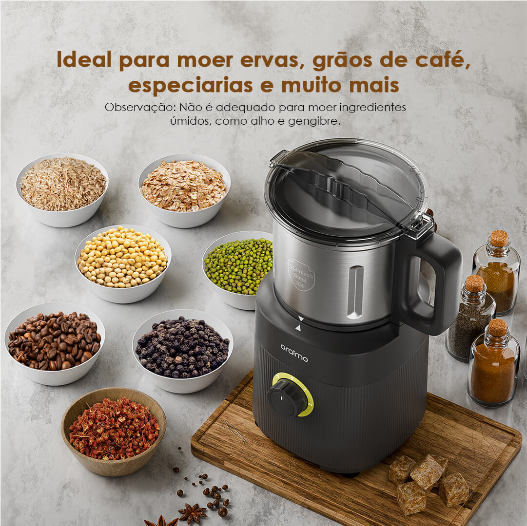 Ideal para moer ervas, grãos de café, especiarias e muito mais.