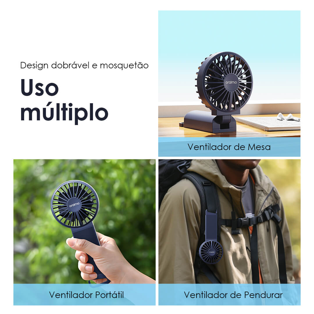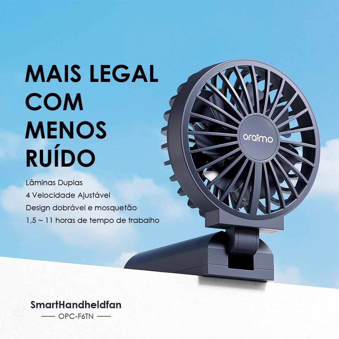 Após estar completamente carregado, o SmartHandheldfan pode funcionar por um máximo de 11 horas. O tempo real de funcionamento pode variar dependendo da velocidade do vento.