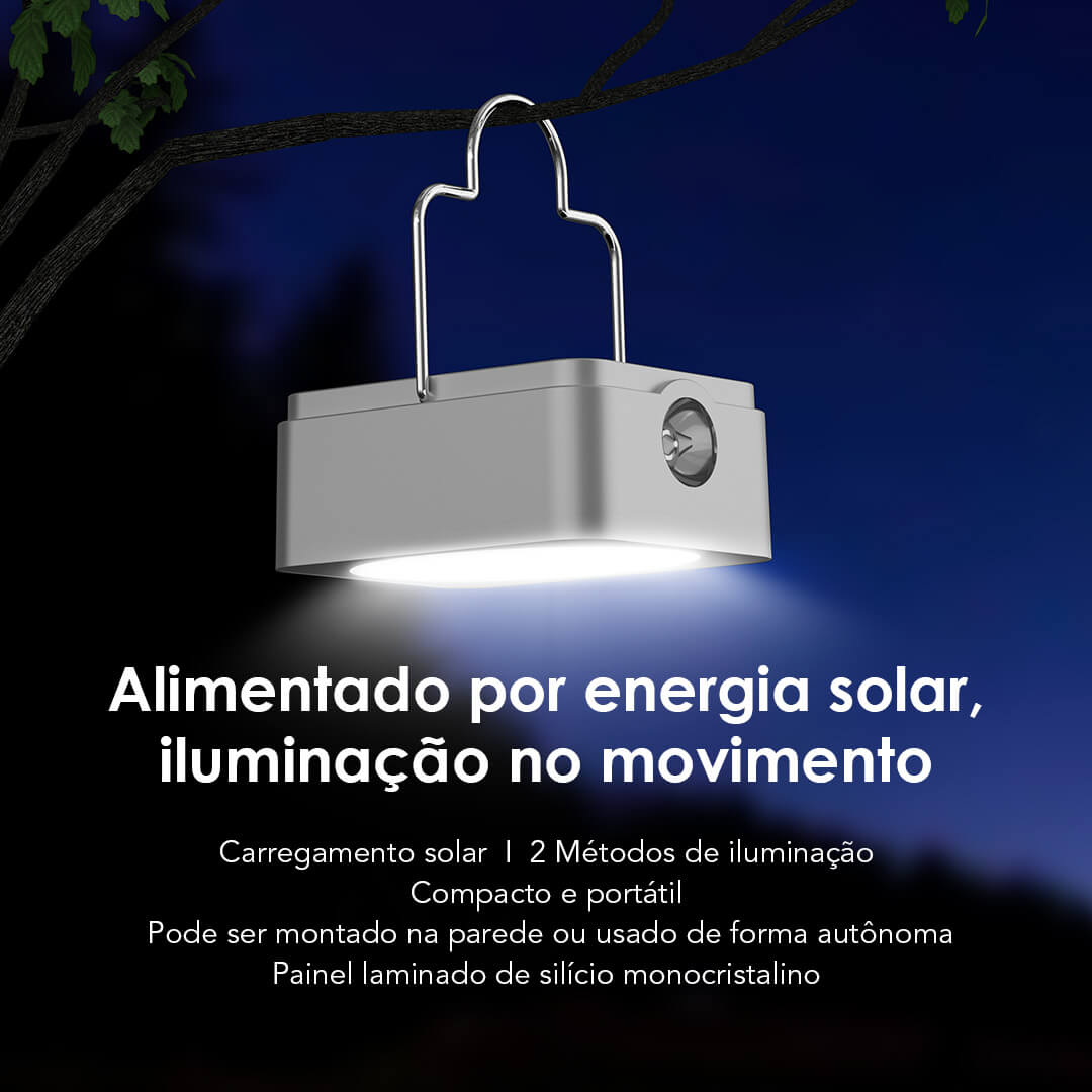 O design compacto do SmartLamp Solar facilita o transporte para qualquer lugar.