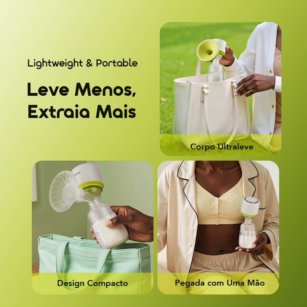 O design leve e portátil é incrível. Consigo levar esta bomba para qualquer lugar, seja para o trabalho ou viagens. Além disso, sua estrutura ergonômica facilita o uso, tornando a extração muito mais prática. ✨