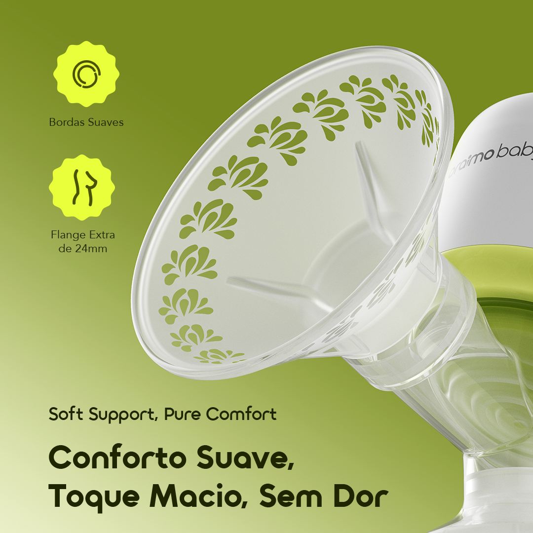 A flange especialmente projetada de 23mm é muito confortável. As bordas são suaves e amigáveis para a pele, garantindo uma experiência sem dor durante a extração. Um produto essencial para qualquer mãe.