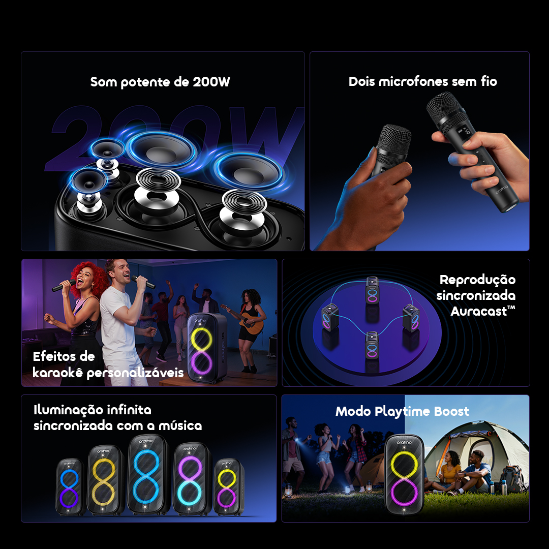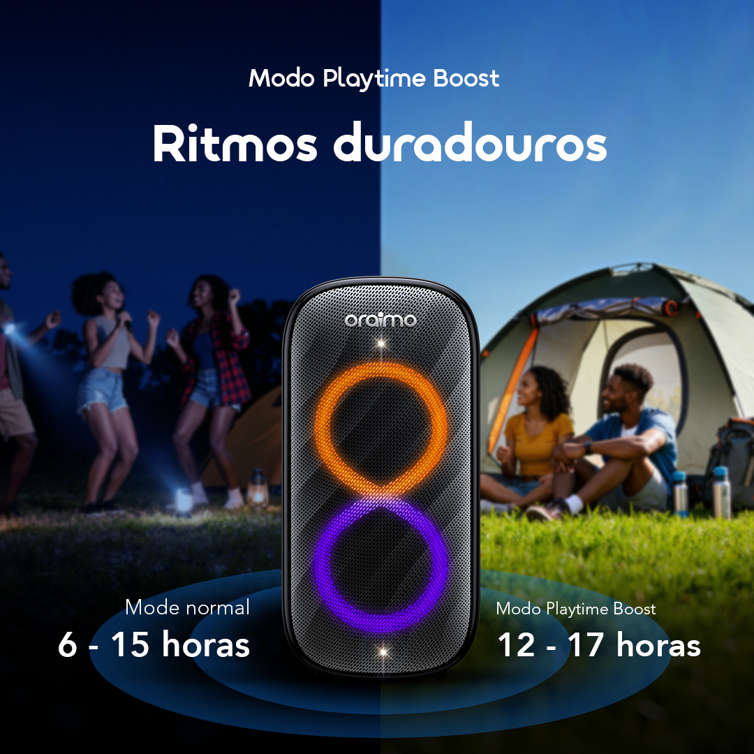 Mantenha a música tocando por horas com o Modo Playtime Boost, perfeito para festivais de dia inteiro ou acampamentos noturnos. O ritmo continua muito depois da chegada da multidão.