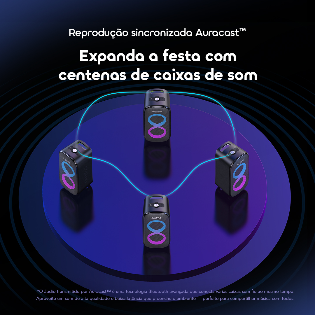 Conecte mais de 100 alto-falantes compatíveis via Auracast™ e preencha todos os espaços com o mesmo ritmo. De pequenas reuniões a grandes eventos ao ar livre, o som permanece perfeitamente sincronizado.