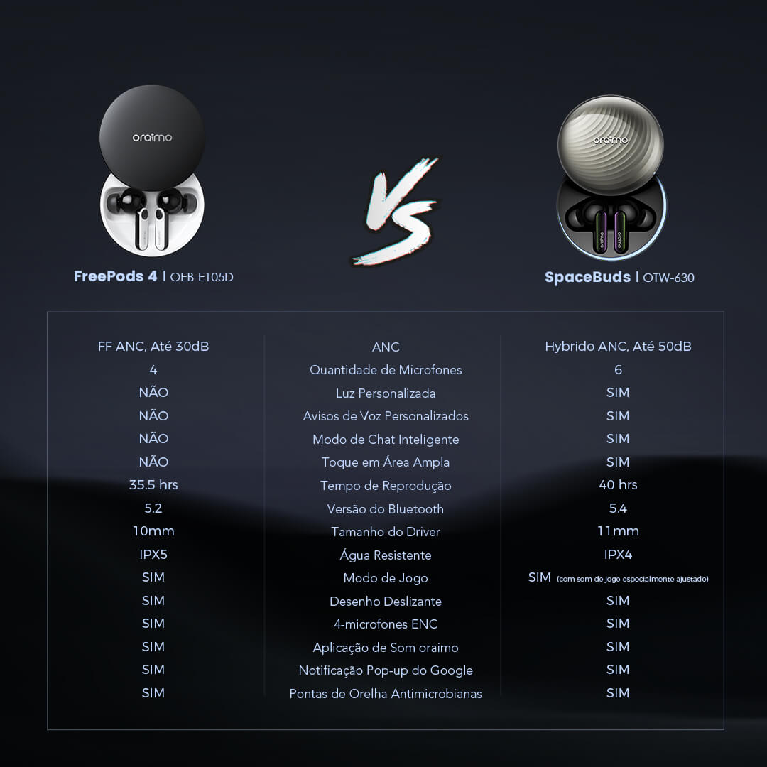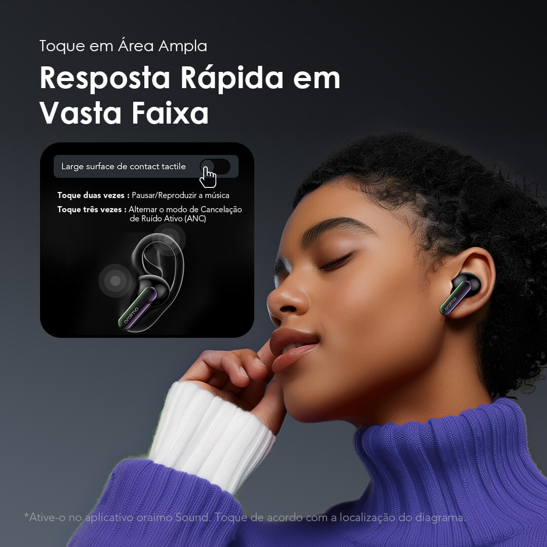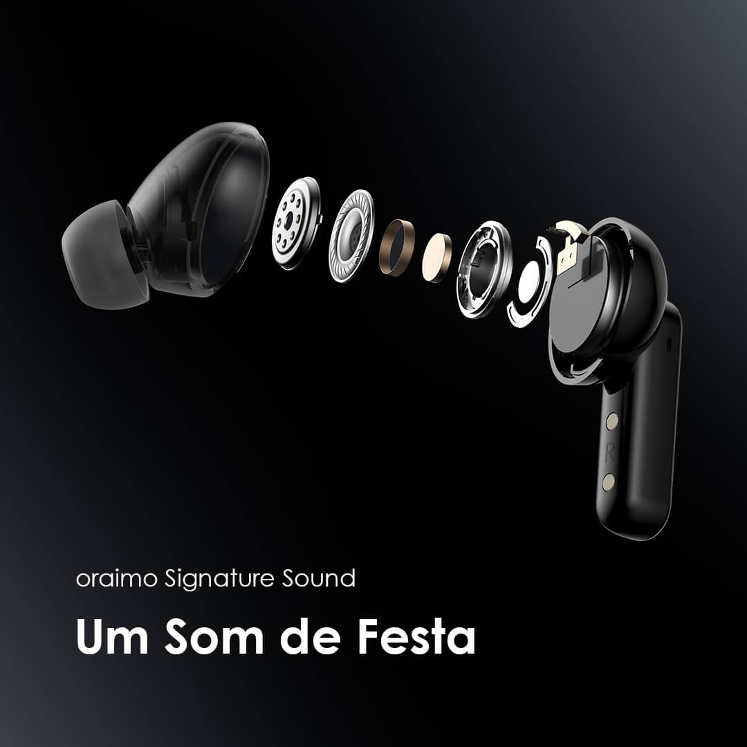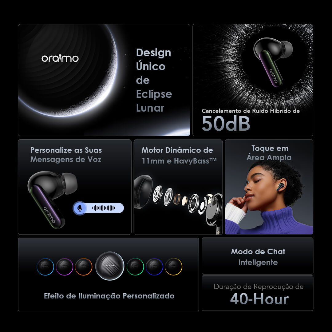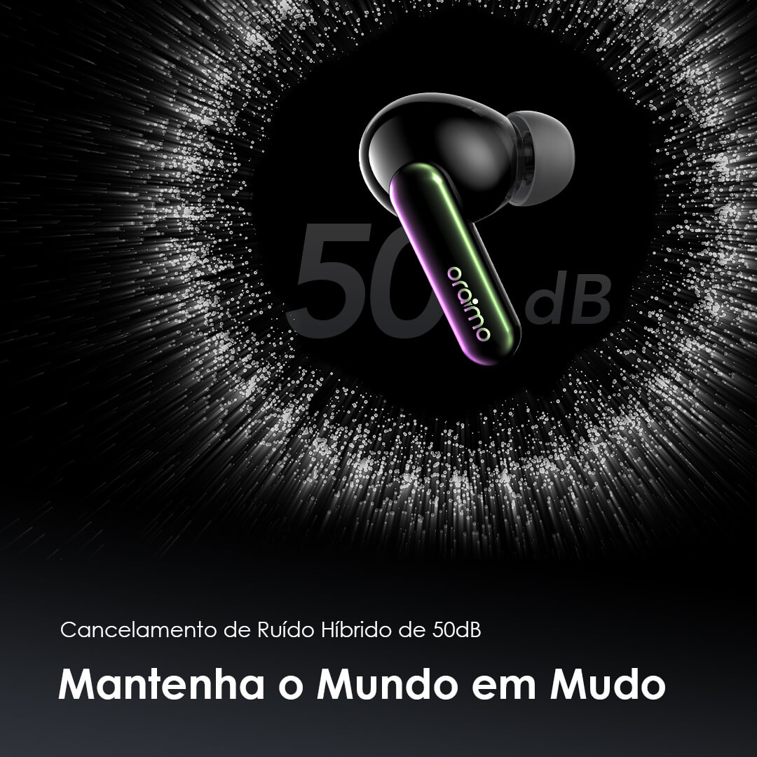 Experimente tranquilidade pura como no espaço com a tecnologia avançada de cancelamento de ruído híbrido da oraimo que afoga distrações sem esforço e fornece até 50dB de redução de ruído. Imersa-se em suas músicas favoritas, focando apenas no som que importa.