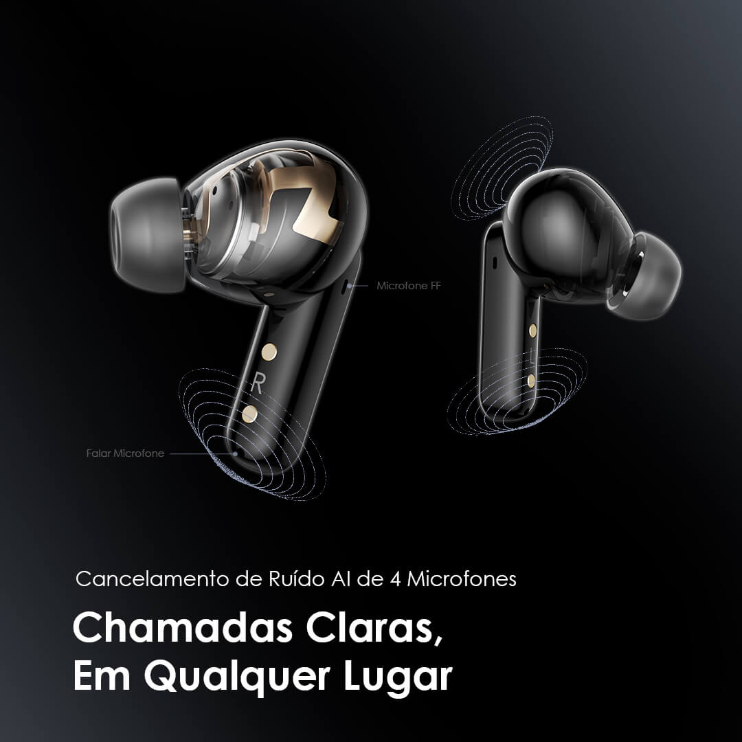 Equipado com um total de 4 microfones e um algoritmo de rede neural profunda da IA, os SpaceBuds podem transmiter sua voz claramente para os outros mesmo em ambientes ruidosos, seja em casa ou em movimento, e unir distâncias com som superior.