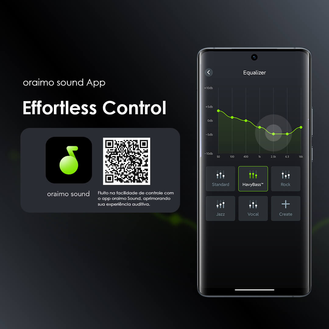 Aproveite o poder da personalização sob seus dedos com o aplicativo de som oraimo, aprimorando sua experiência auditiva.