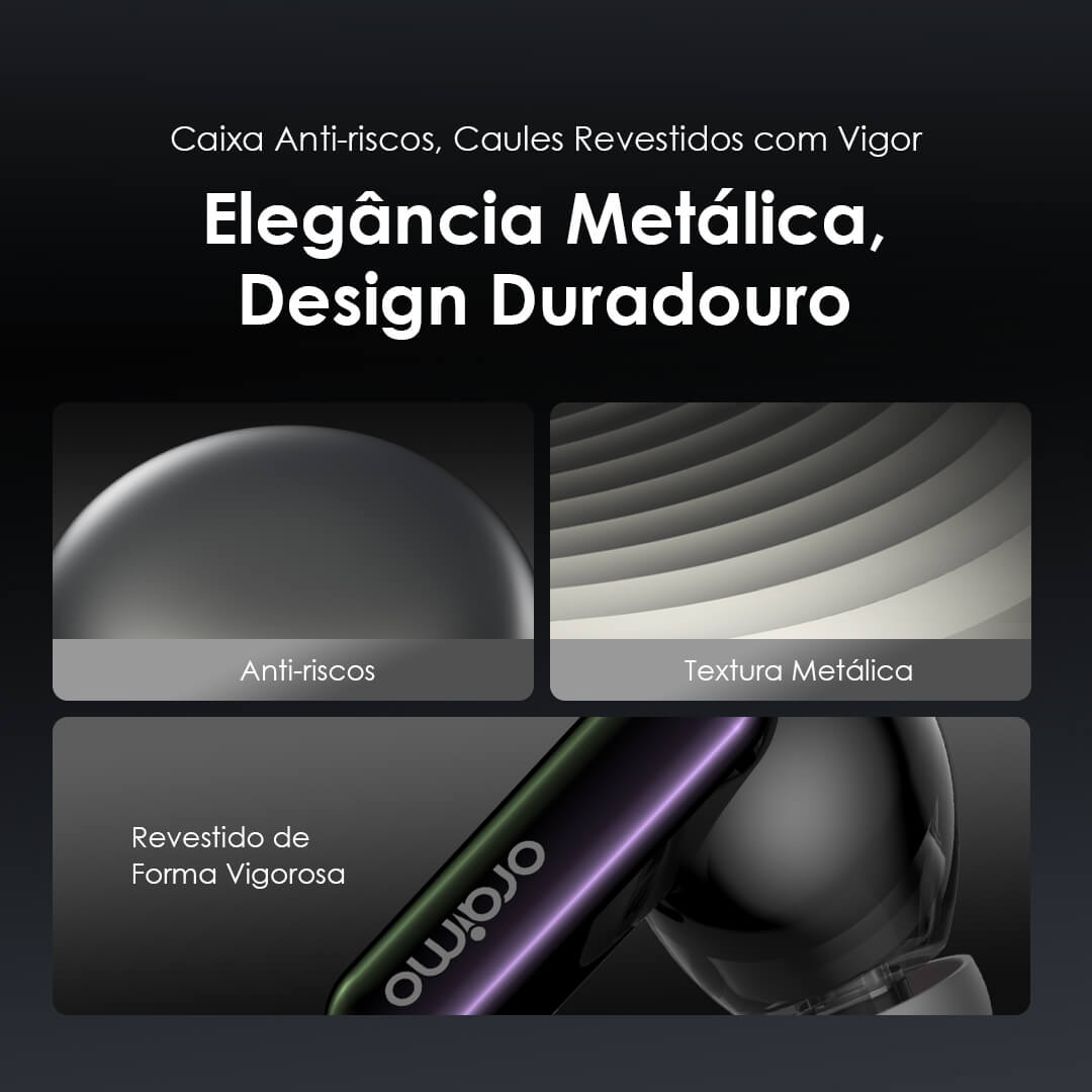 A caixa de carregamento exibe um acabamento metálico com um exterior resistente a arranhões e apresenta hastes revestidas de cores deslumbrantes para um apelo exquisito e refinado.
