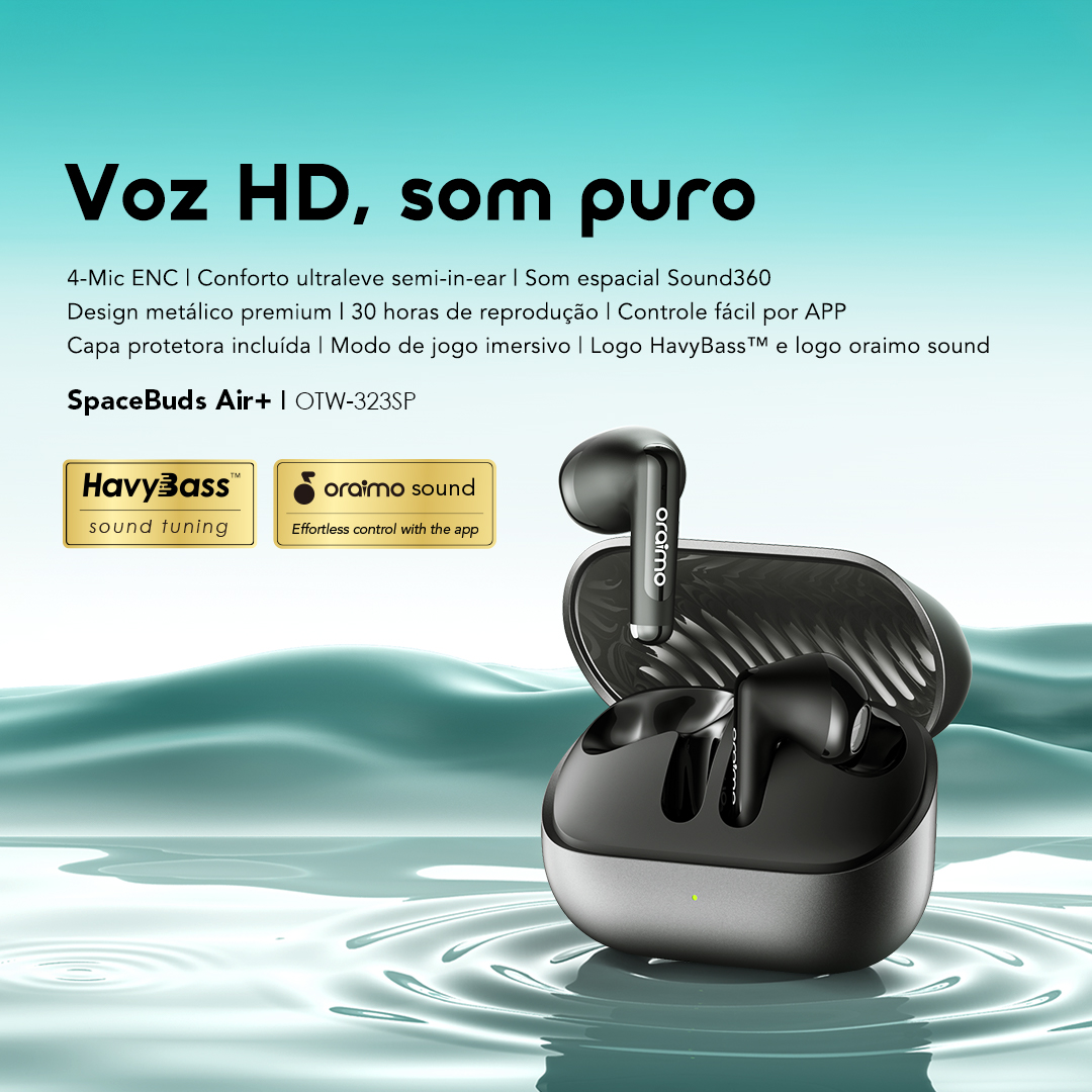 Com o algoritmo exclusivo de som espacial da oraimo, desfrute de uma cena sonora mais ampla e imersiva que o envolve com a música, dando vida a cada detalhe como se estivesse no centro da apresentação.