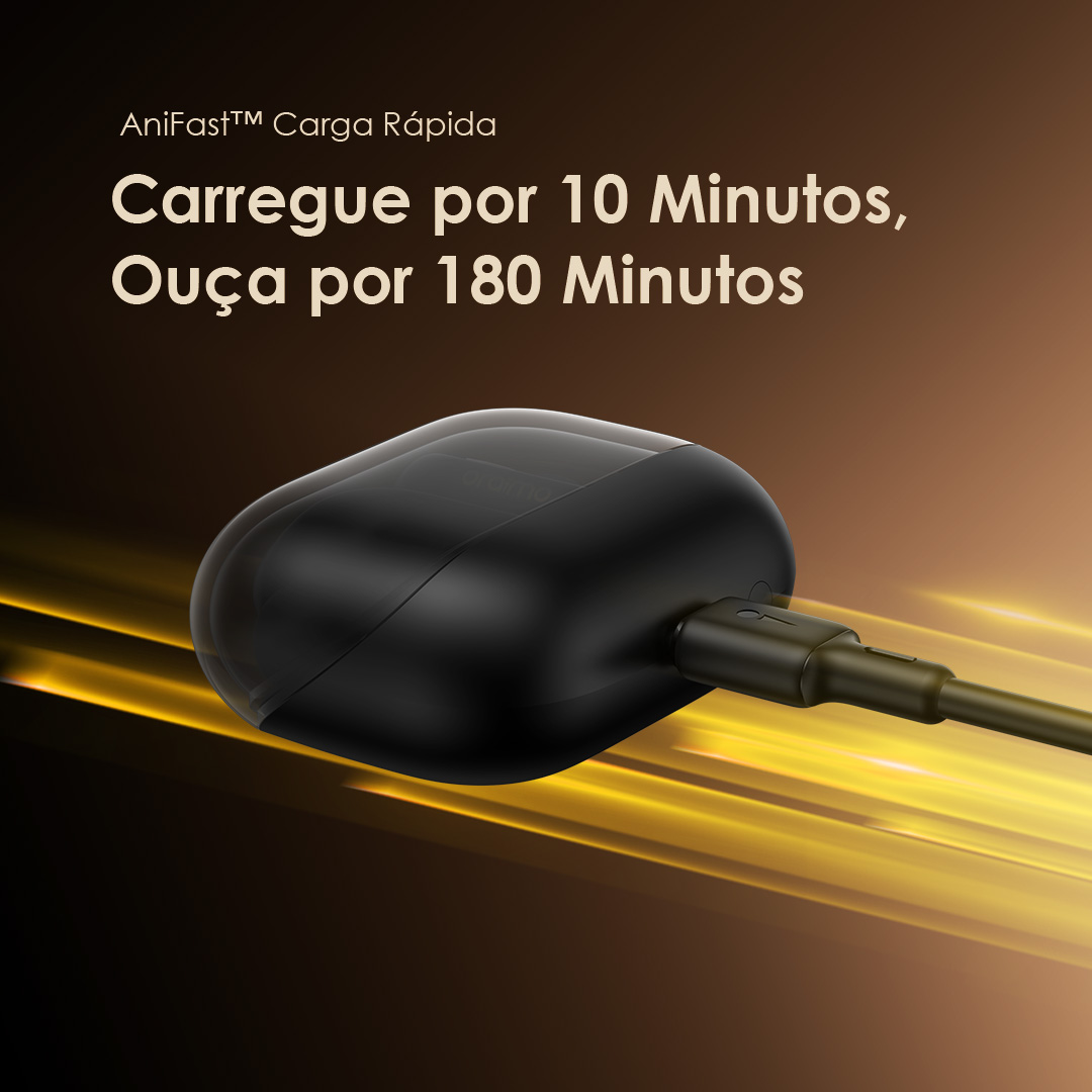 Com um rápido carregamento de 10 minutos usando a tecnologia exclusiva AniFast™ da oraimo, você pode desfrutar de 180 minutos de música contínua.