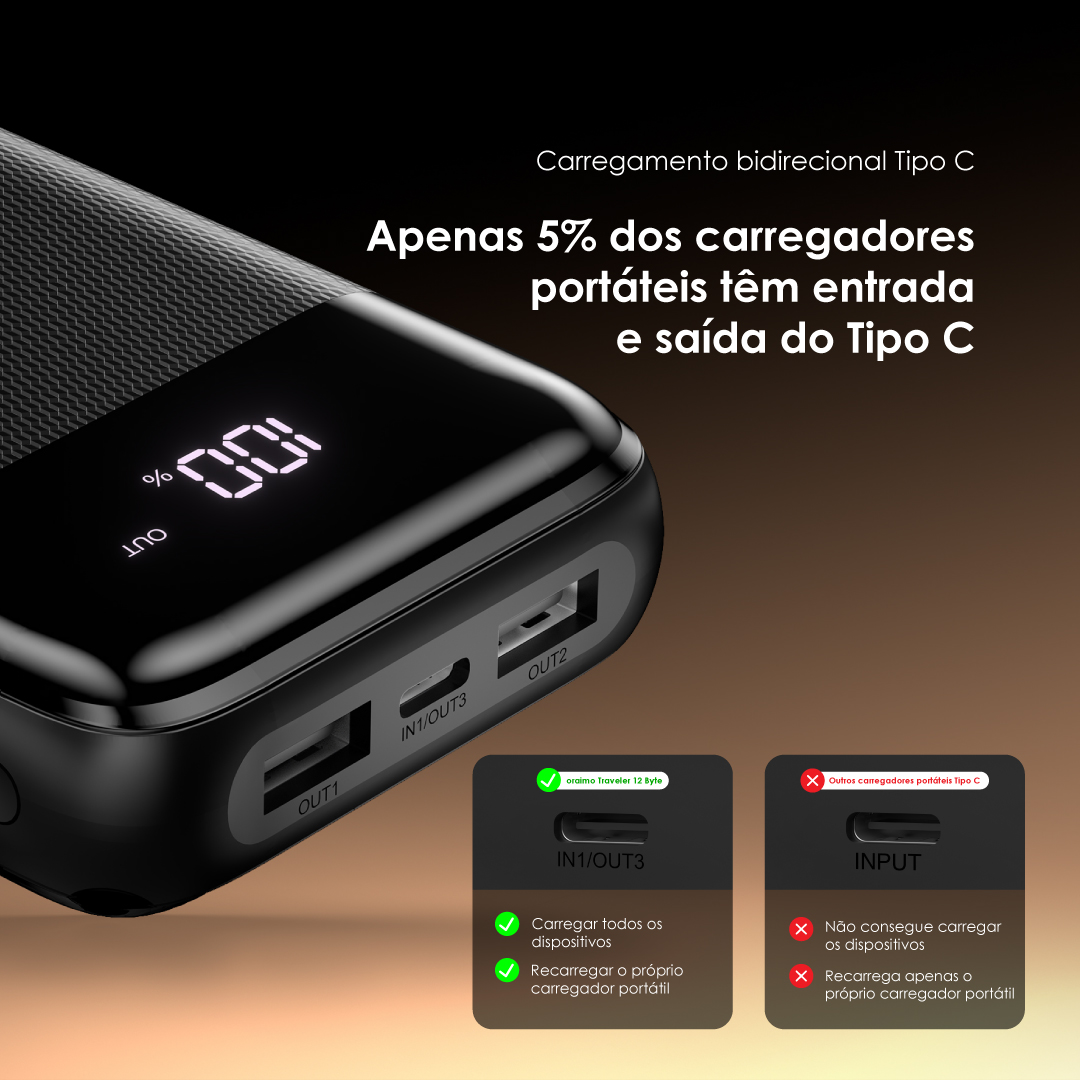 Compatível com Samsung, Apple e outros dispositivos, o oraimo Traveler 12 Byte suporta seu estilo de vida multitarefa com três saídas.