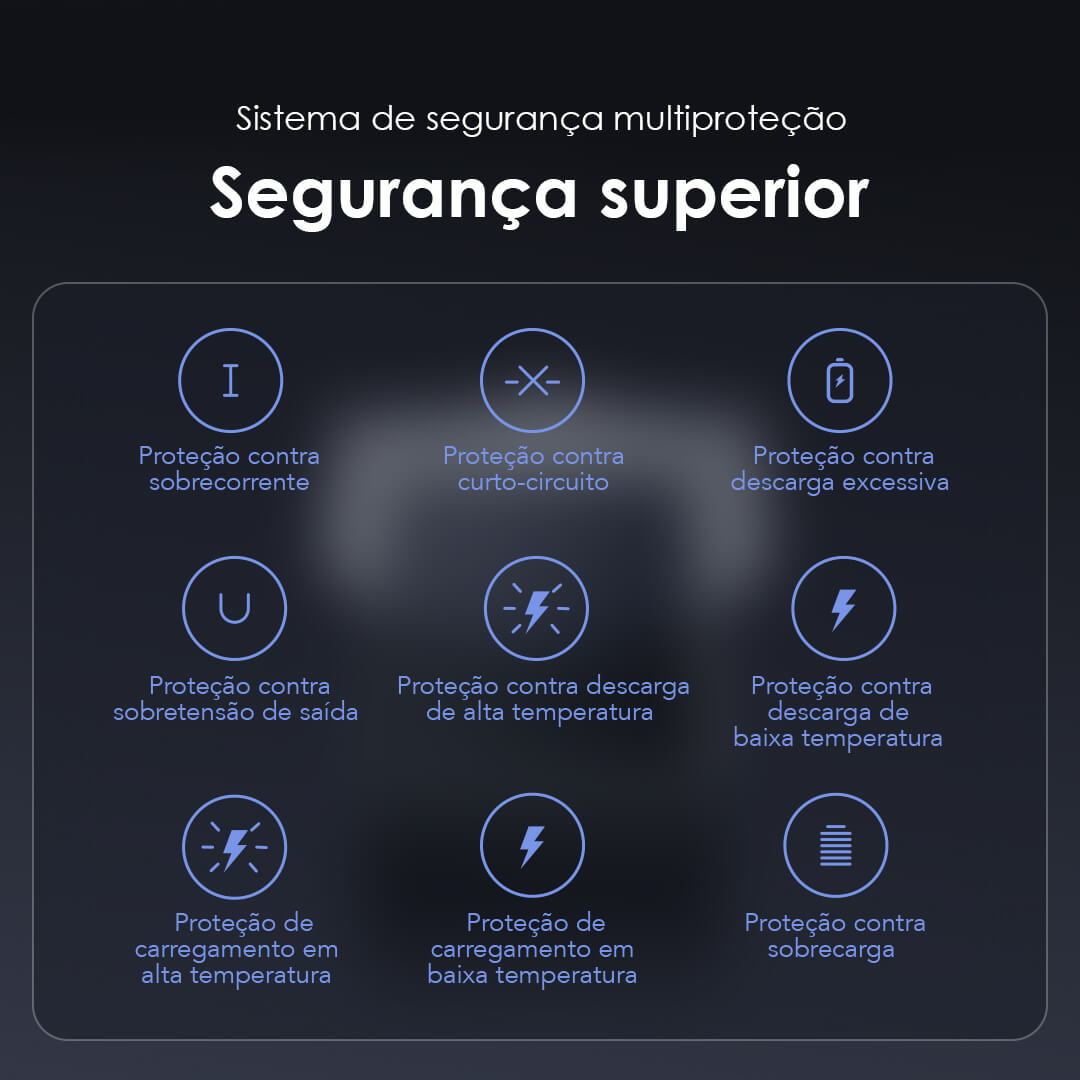 Sistema de Segurança de Multi-proteção Superior SegurançaSua bateria de polímero de lítio de alta qualidade é internacionalmente certificada e segura, garantindo uma taxa de conversão mais alta, tensão estável e proteção de circuito confiável.
