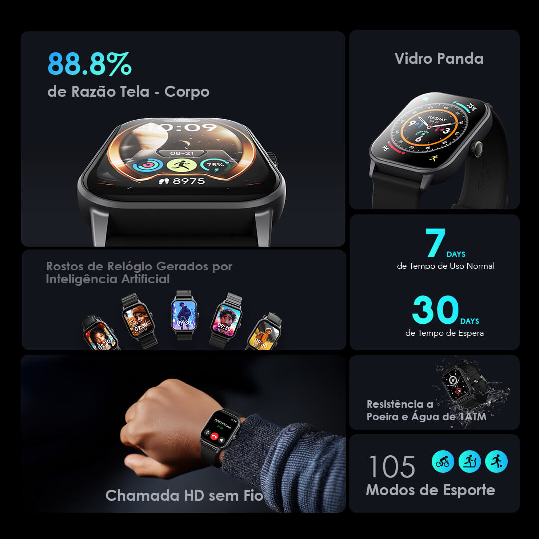 Com esse relógio equipado com uma bateria de grande capacidade de 300mAh, aproveite uma vida útil da bateria e horas de standby prolongadas que acompanham o seu estilo de vida.