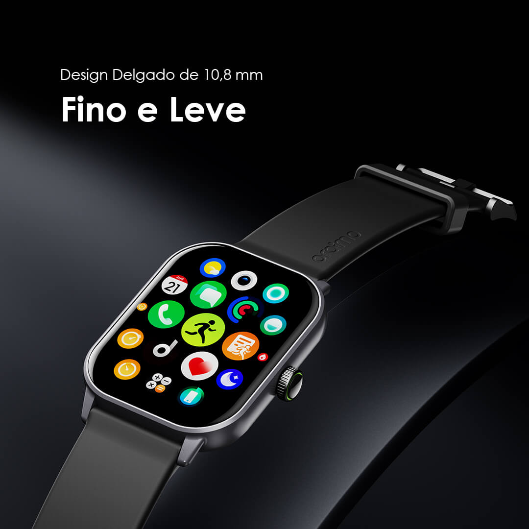 O Relógio oraimo Watch 5 é tão fino quanto 10.8 mm e pesa apenas 41,4 gramas. Seu caso de liga de alumínio, combinado com uma coroa digital de aço inoxidável, lhe confere um caráter elegante.