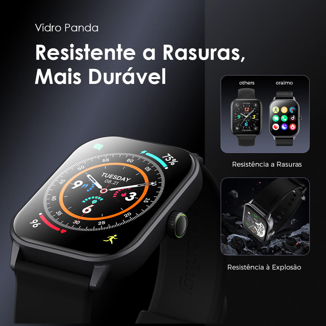 A alta resistência ao impacto do Vidro Panda suporta o desgaste cotidiano e reduz a possibilidade de o relógio quebrar se acidentalmente caído.