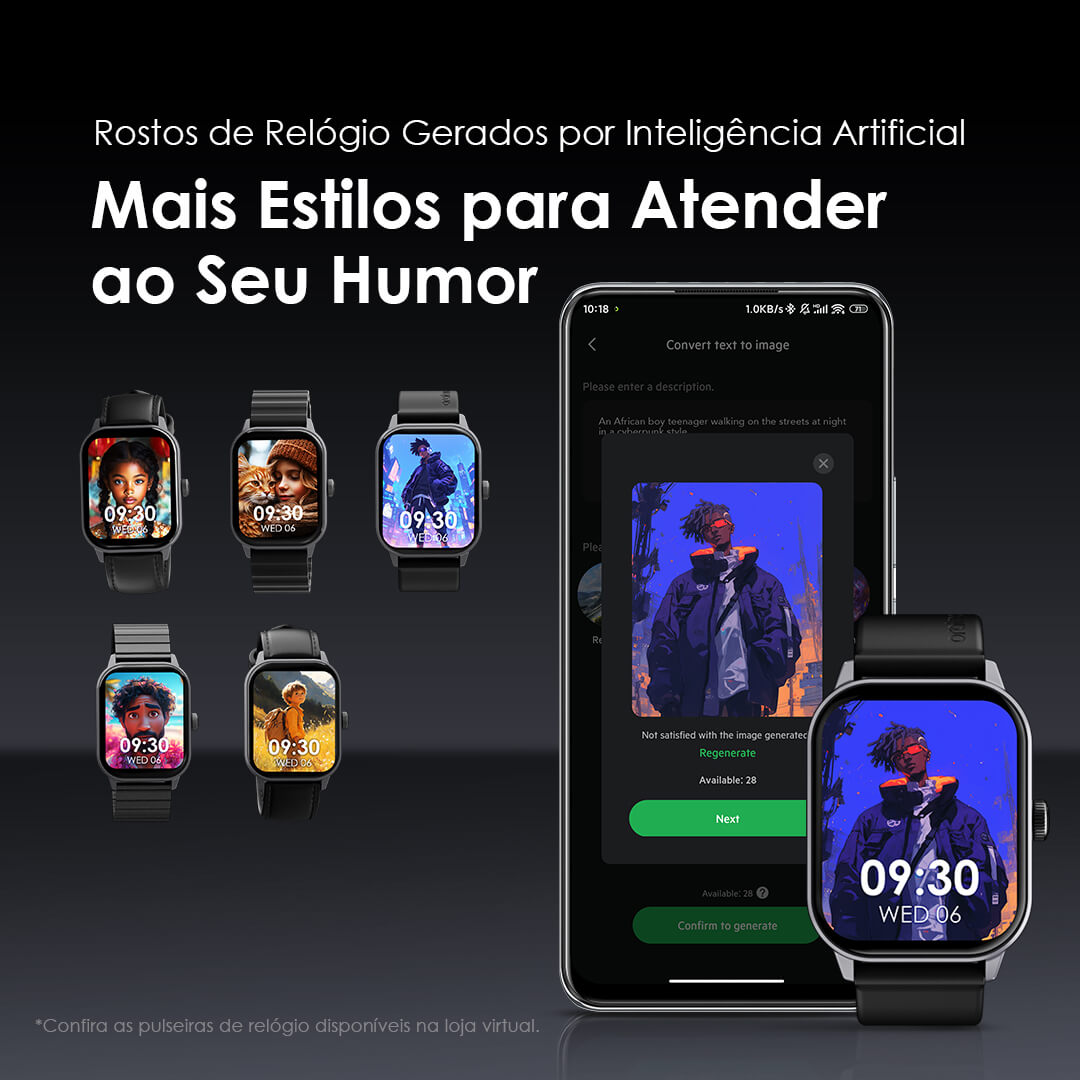 Baixe o aplicativo oraimo health na Apple App Store ou Google Play e crie uma fase de relógio gerada por IA. Você também pode escolher entre as fases de relógio disponíveis no centro do disco ou fazer o upload de uma da sua galeria.