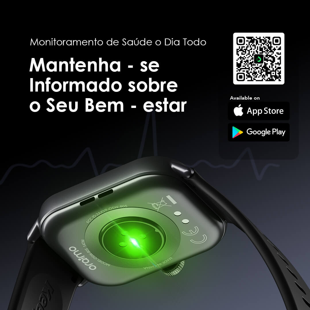 Acompanhe o seu oxigênio no sangue, batimento cardíaco, respiração e qualidade do sono com o Relógio oraimo Watch 5. Fique informado e proativo sobre o seu bem - estar.