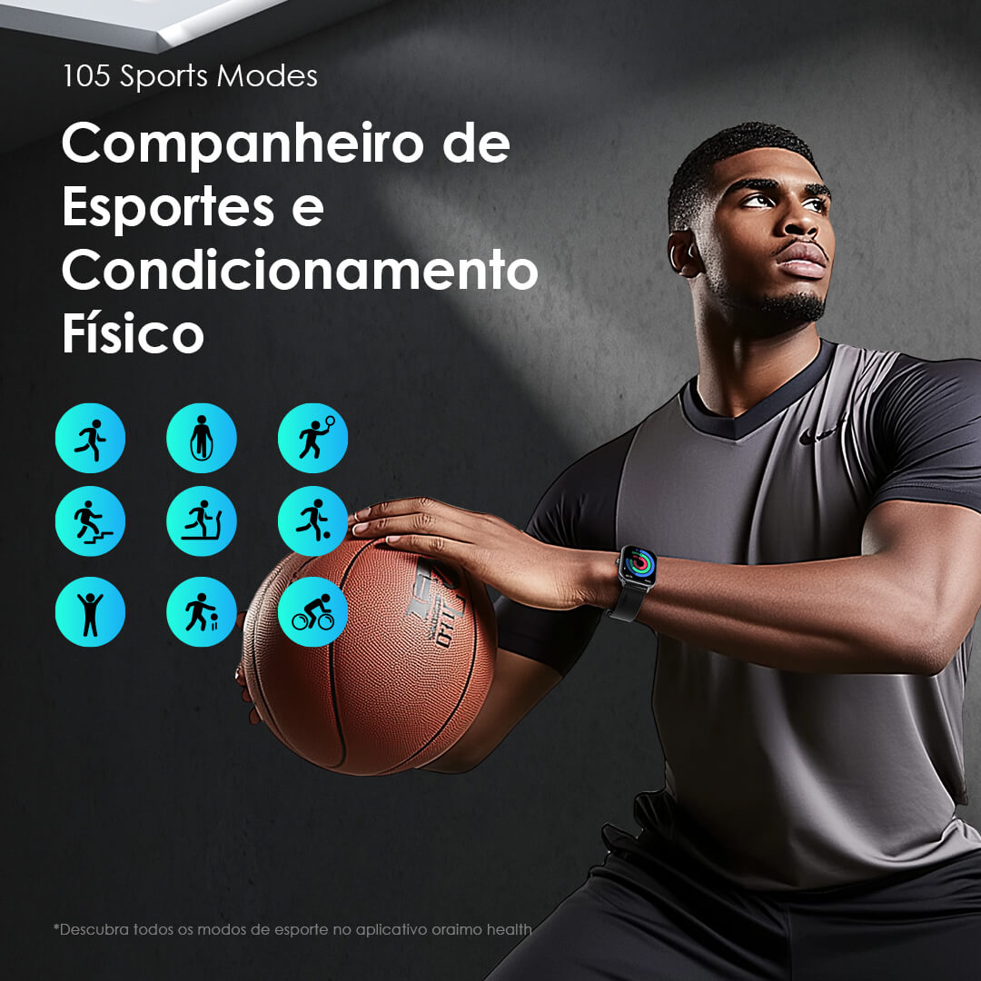 Do futebol ao tênis, da corrida à escalada, o Relógio oraimo Watch 5 acompanha cada movimento com precisão. Mantenha - se em forma e com estilo com 105 modalidades esportivas.