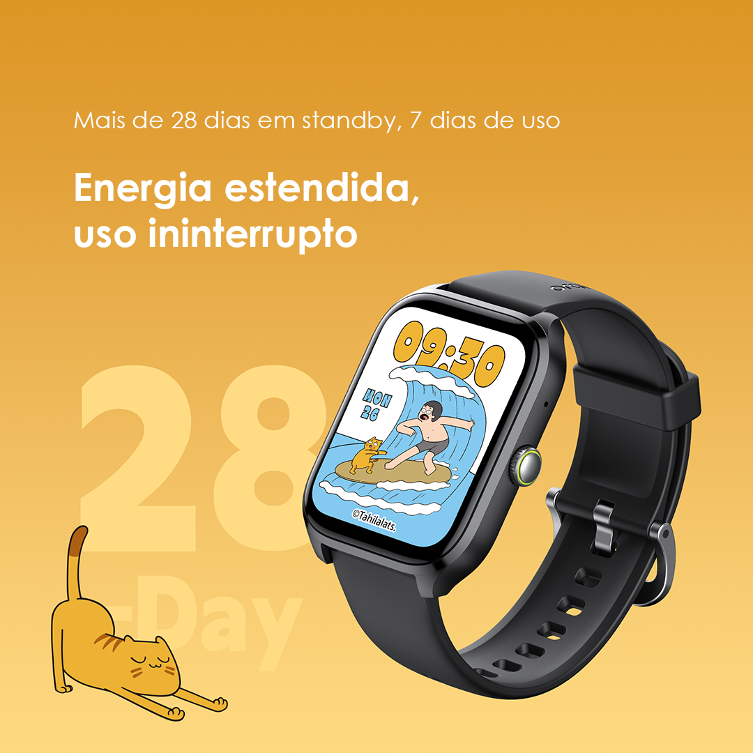 O Watch 5 Lite dura mais de 28 dias com uma única carga, dando-lhe liberdade para permanecer com energia durante longos períodos sem se preocupar com recargas.