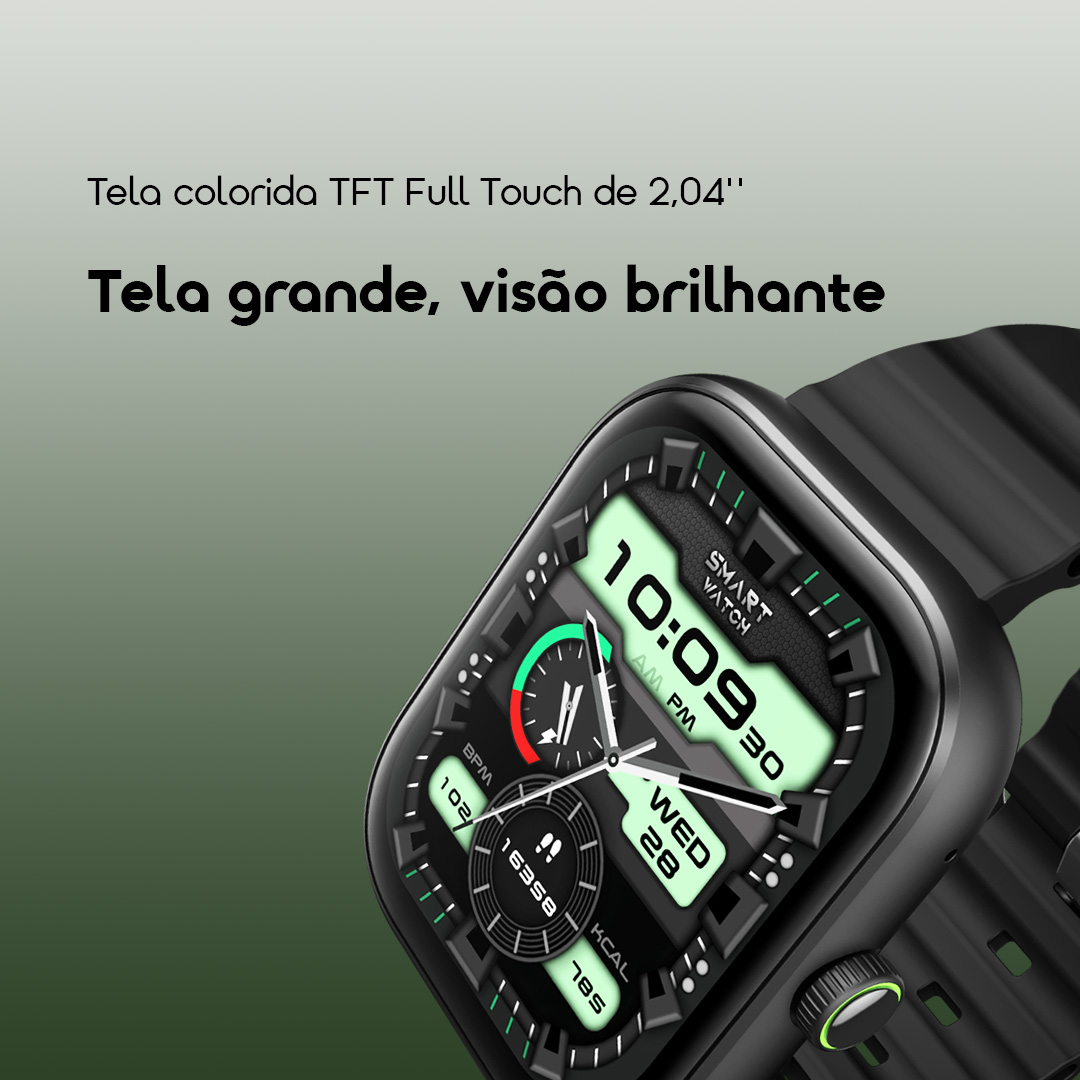 A tela TFT de 2,04" oferece clareza vibrante, desde os mostradores até os menus. O vidro Panda resistente a riscos protege contra o desgaste diário.