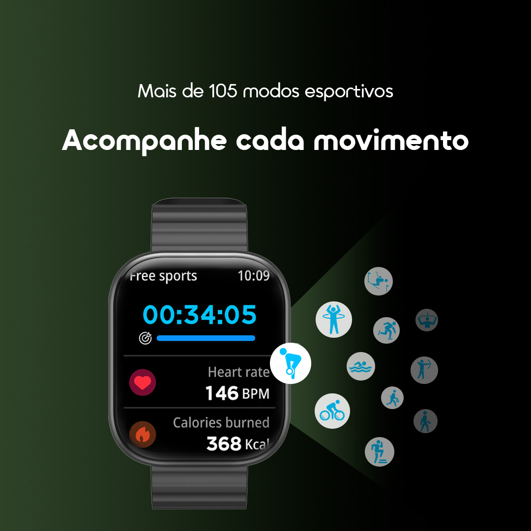 Monitore frequência cardíaca, oxigênio no sangue, estresse e sono diretamente do seu pulso, com insights em tempo real e alertas inteligentes para melhorar sua saúde.
