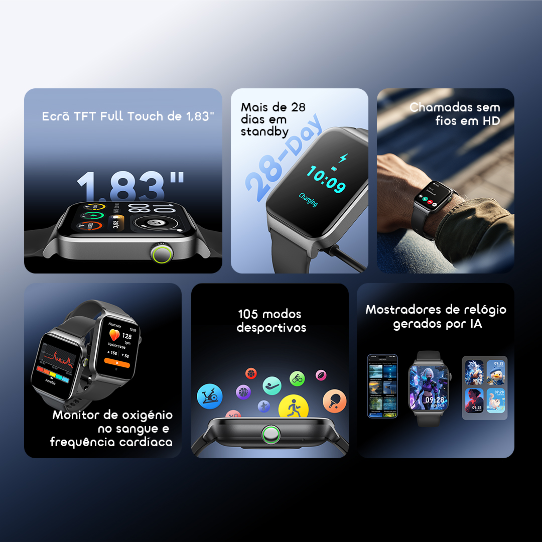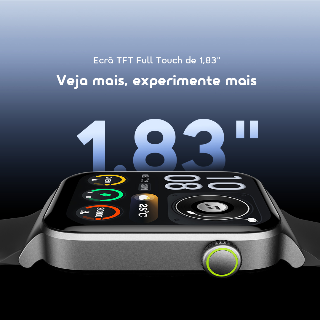 Comprei este modelo por causa da combinação entre visual moderno e funções de saúde. Até agora, o relógio tem funcionado bem e sinto que foi uma compra útil. O ecrã de 1.83 polegadas dá boa visibilidade e a bateria agrada bastante. O produto chegou em ótimo estado e o atendimento foi simpático 👍