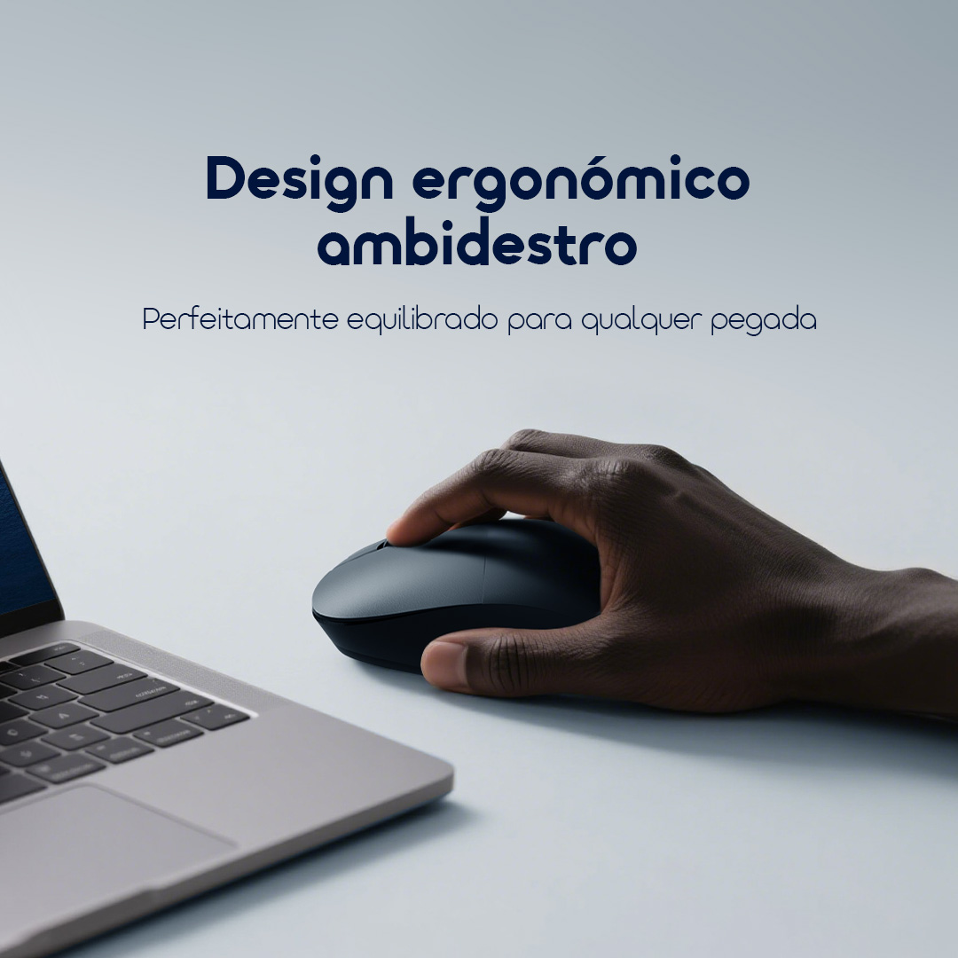 A forma simétrica e as curvas suaves suportam tanto pegada de palma quanto de garra, oferecendo conforto seja para trabalhar ou jogar.