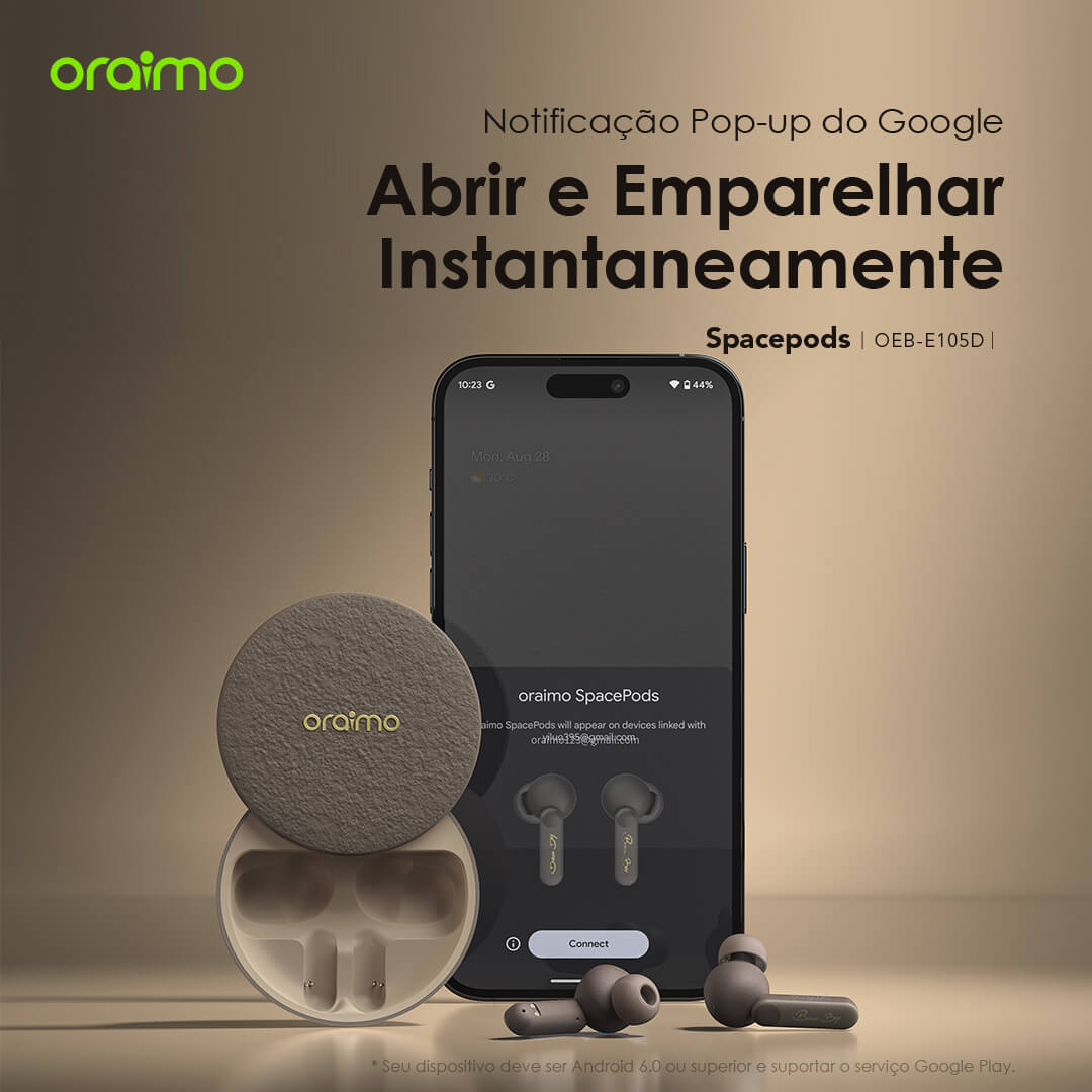 Ele suporta emparelhamento rápido automático com notificação Pop-up entre as oraimo SpacePods e seus dispositivos Google.